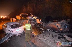 失控大罐車追撞18輛小車致8死26傷現場慘烈 救援現場 2013年12月8日下午4時許,成自瀘高速自貢往成都方向仁壽段(距仁壽出口33公里處)突發一起慘烈車禍,19輛車連環追尾相撞,不同程度損毀。據仁壽消防部門獲悉,目前現場救援已經結束,事故已造成8死26傷。目...
